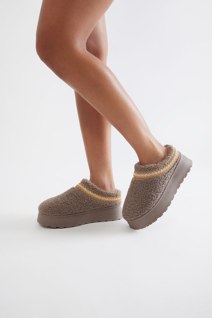 Available In Black And Taupe. | Booties | Sherpa | Round Toe | 1" Low Flatform Heel | Imported
