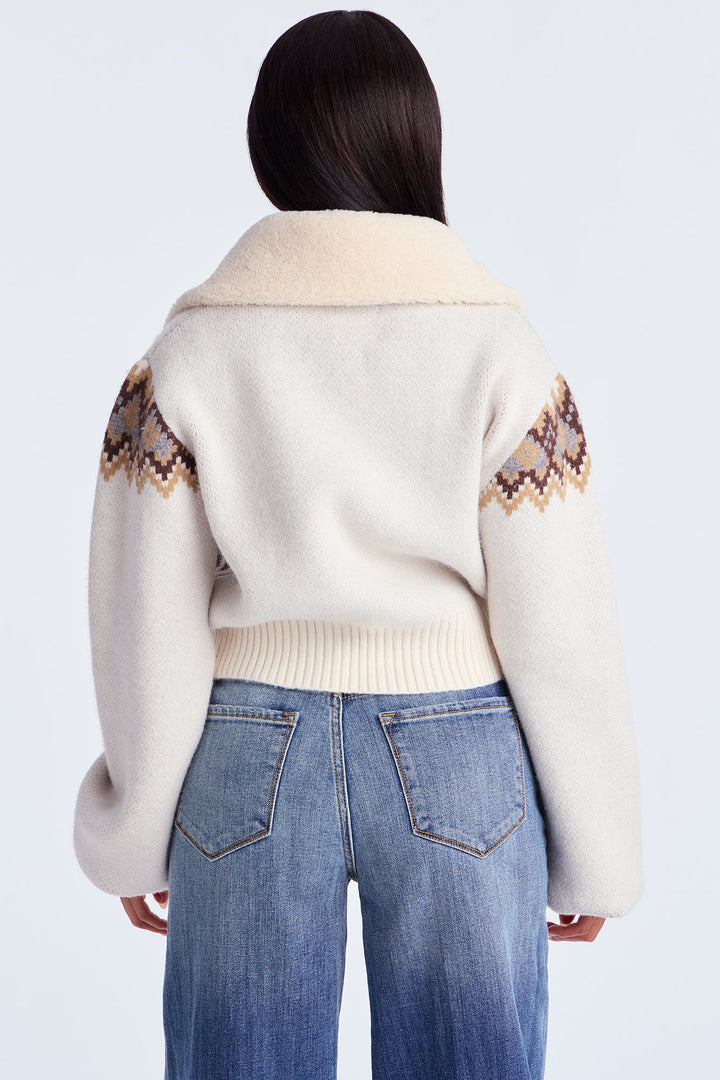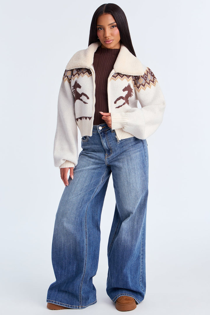 Saddle Up Horse Faux Fur Zip Cardigan - Cream/combo