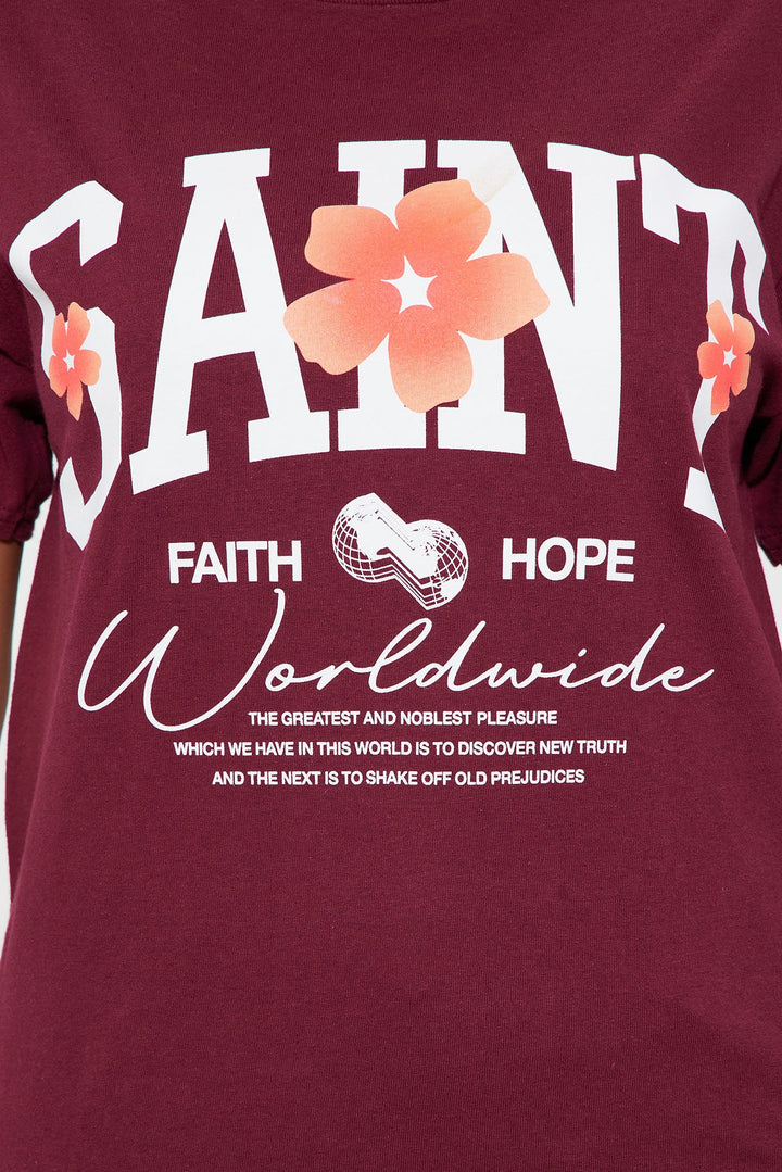 Saint Faith And Hope Worldwide Vintage Washed Tee - Burgundy