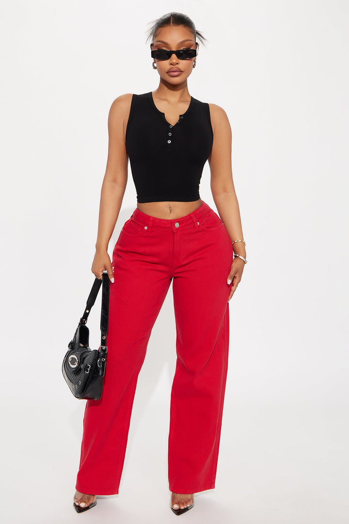 Available In Black And White. | Henley Tank Top | Stretch | Button Up Detail | Cropped | Self: 74% Viscose 20% Nylon 6% Spandex | Imported