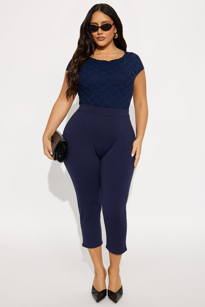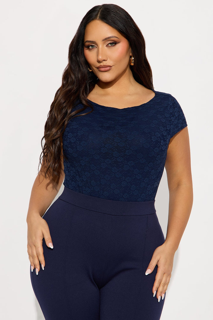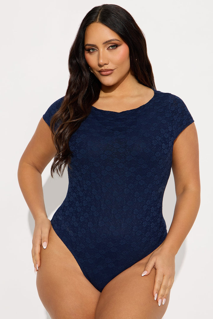 Samantha Lace Short Sleeve Bodysuit - Navy
