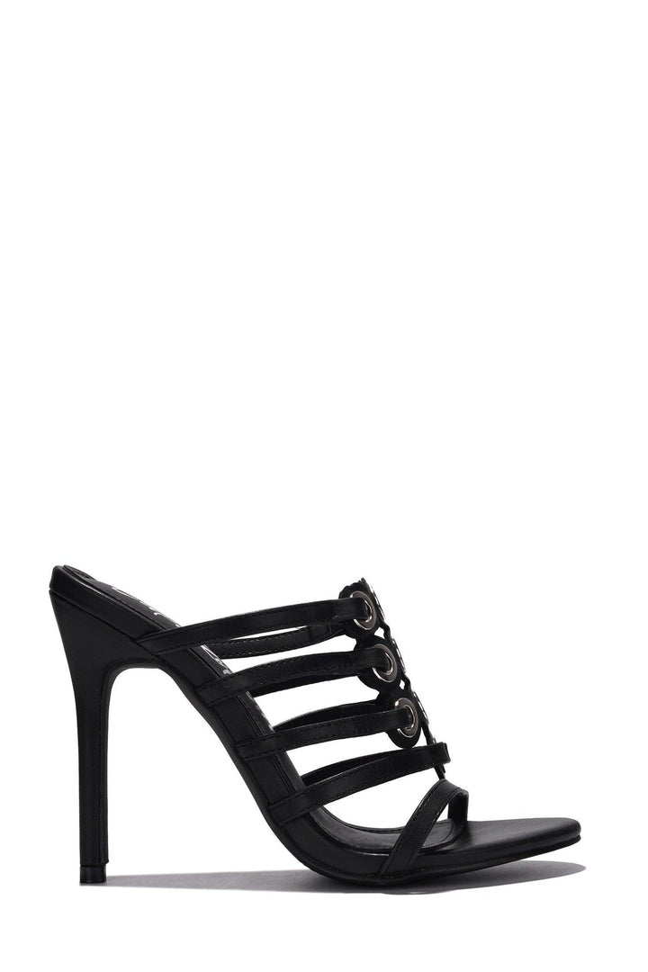 SAMYLYN - BLACK - HEELS by CAPE ROBBIN PU lightly cushioned insole multicolor Step out in style and bring that positive energy with Samylyn. Features gorgeously defined multi-vamp straps trimmed with shiny grommets,classic open,square toe for a timeless vibe,and sturdy heels for the perfect confidence booster. Comes in black,white,or multicolor.