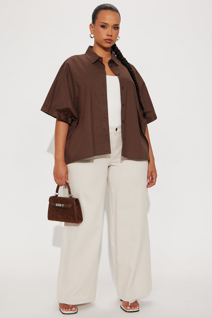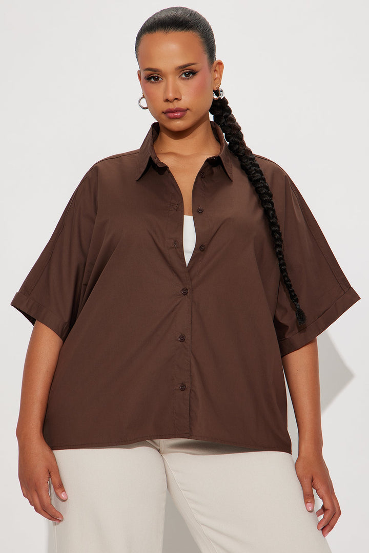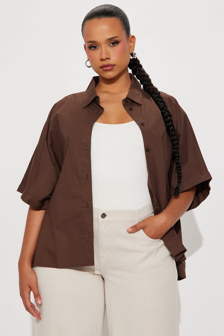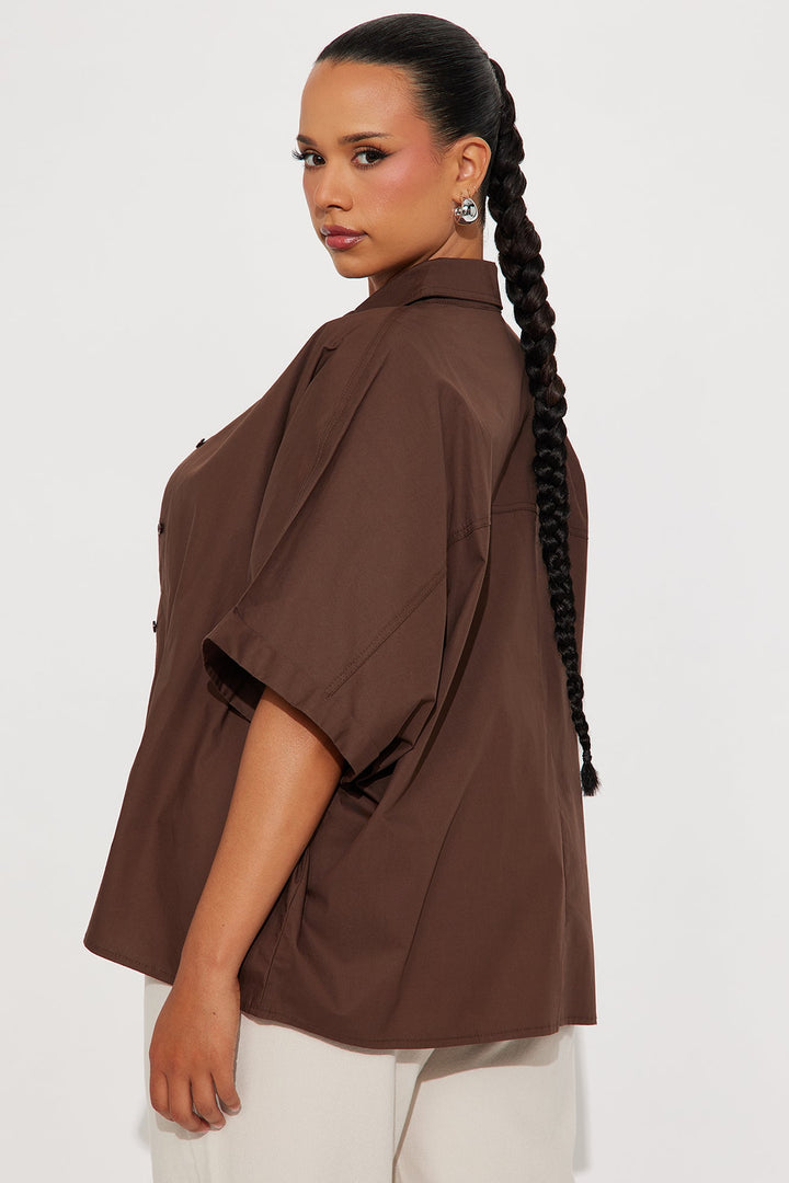 Sancie Oversized Poplin Button Up Shirt - Chocolate