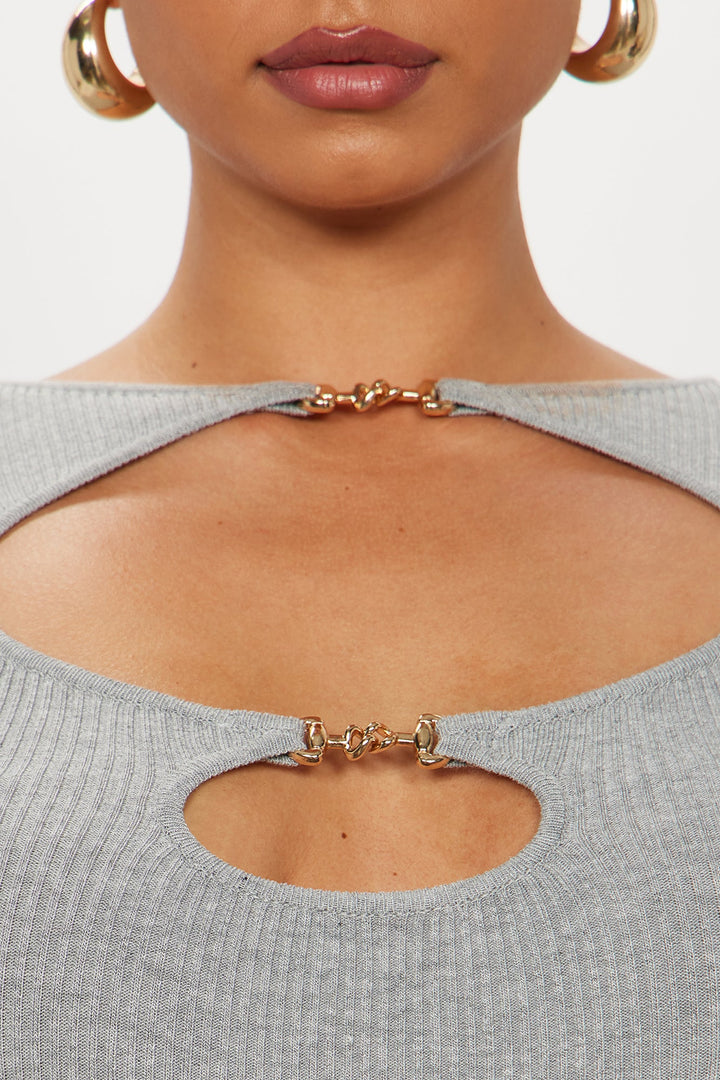 Available In Black, Chocolate, Cream, Grey And Red. | Bodysuit | Stretch | Crew Neck | Long Sleeve | Hardware Detail | Cut Out Detail | RIbbed | Thong Bottom | Snap Button Closure | Final Sale | 80% Rayon 20% Polyester | Imported