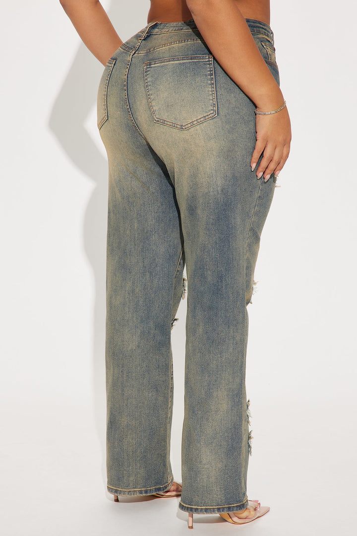 Sara Star Stretch Tinted Straight Leg Jeans - Vintage Wash