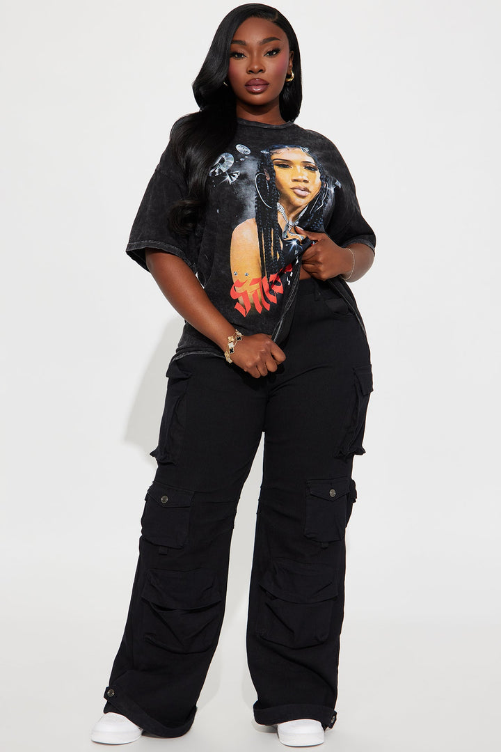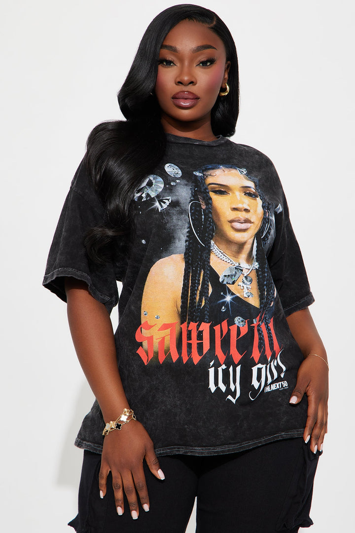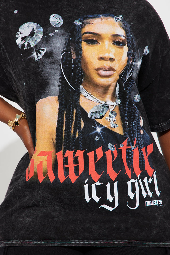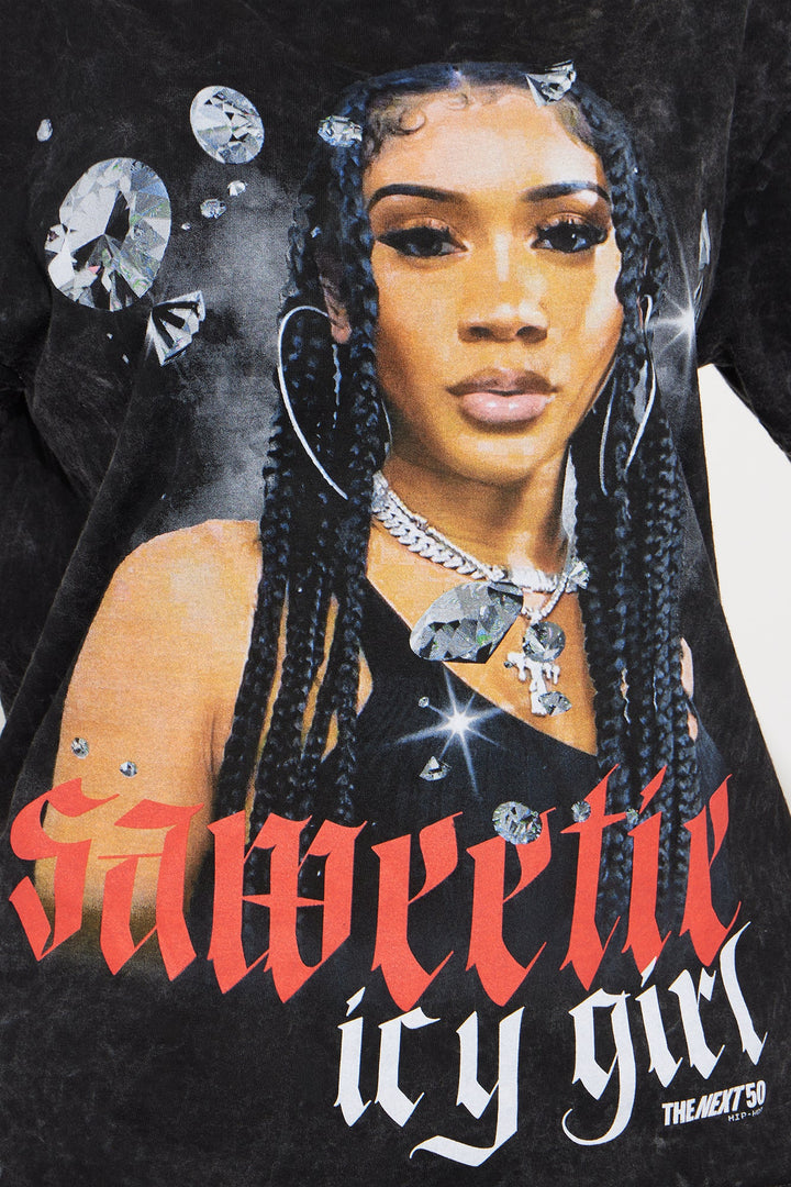 Saweetie Icy Girl Washed Oversized Tee - Black