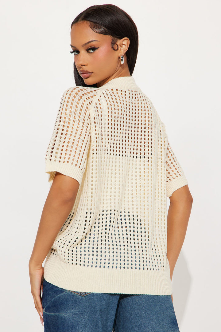 Available In Cream. | Front Zip Sweater | Crochet | Graphic | 98% Acrylic 2% Polyamide | Imported