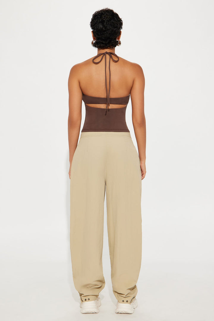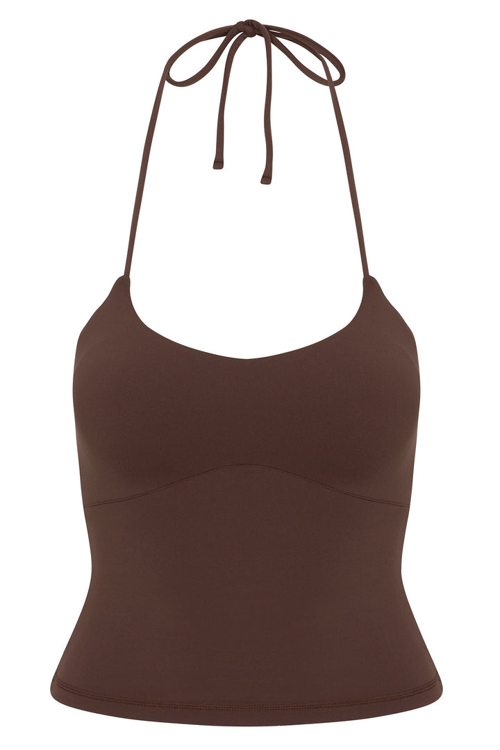 Second Skin Double Lined Cut Out Halter Top - Chocolate