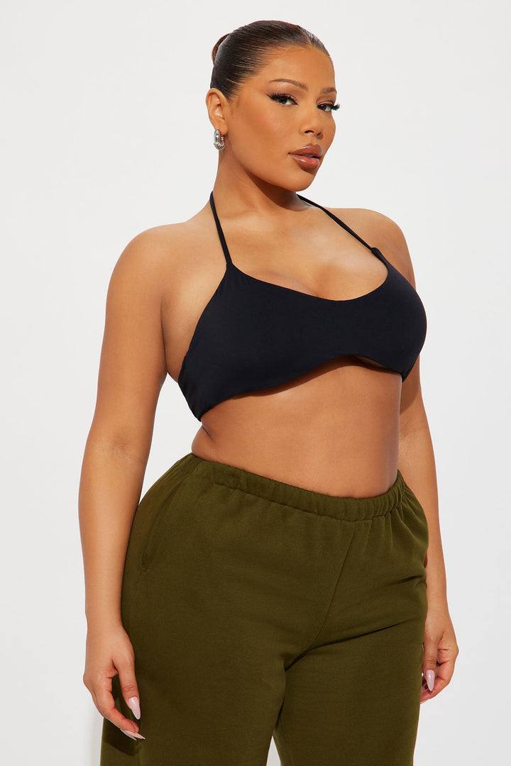 Available In Black, Chocolate And Stone. | Bra Top | Stretch | Halter | Padded | Buttery Soft | Double Lined | Cropped | Shell: 75% Nylon 25% Spandex | Lining1: 75% Nylon 25% Spandex | Lining2: 92% Polyester 8% Spandex | Imported