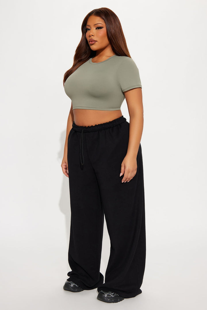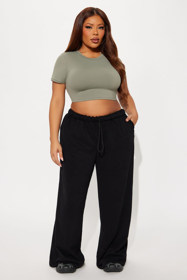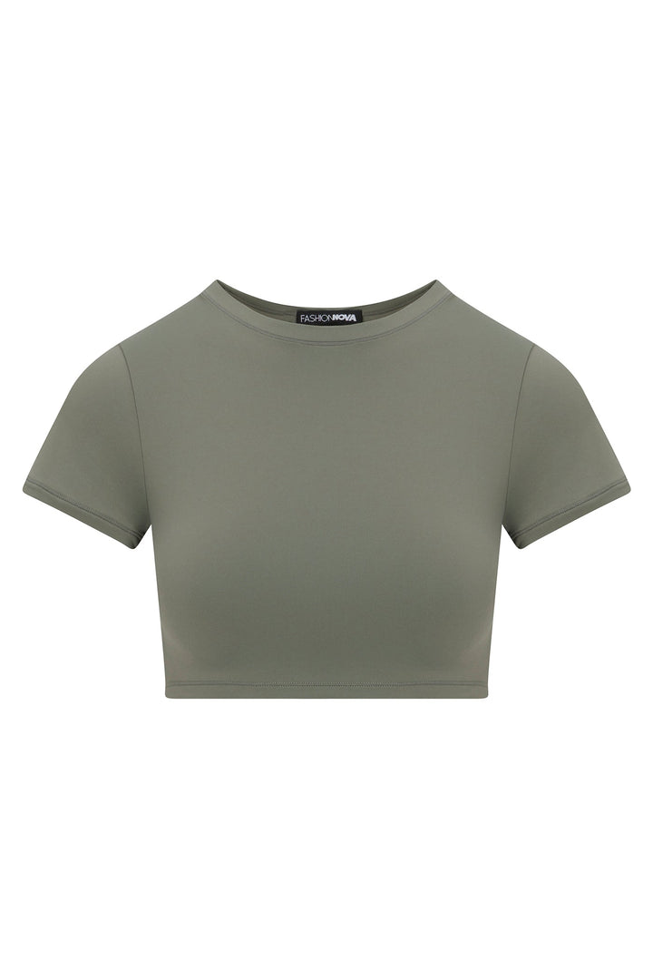 Available In Black, Bone, Chocolate, Military Green And Stone. | Baby Tee | Short Sleeve | Double Lined | Buttery Soft | Cropped | Stretch | Shell: 75% Nylon 25% Spandex | Lining: 75% Nylon 25% Spandex | Imported