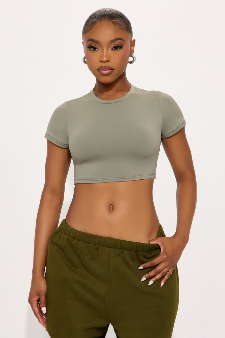 Second Skin Double Lined Super Cropped Tee - Military Green