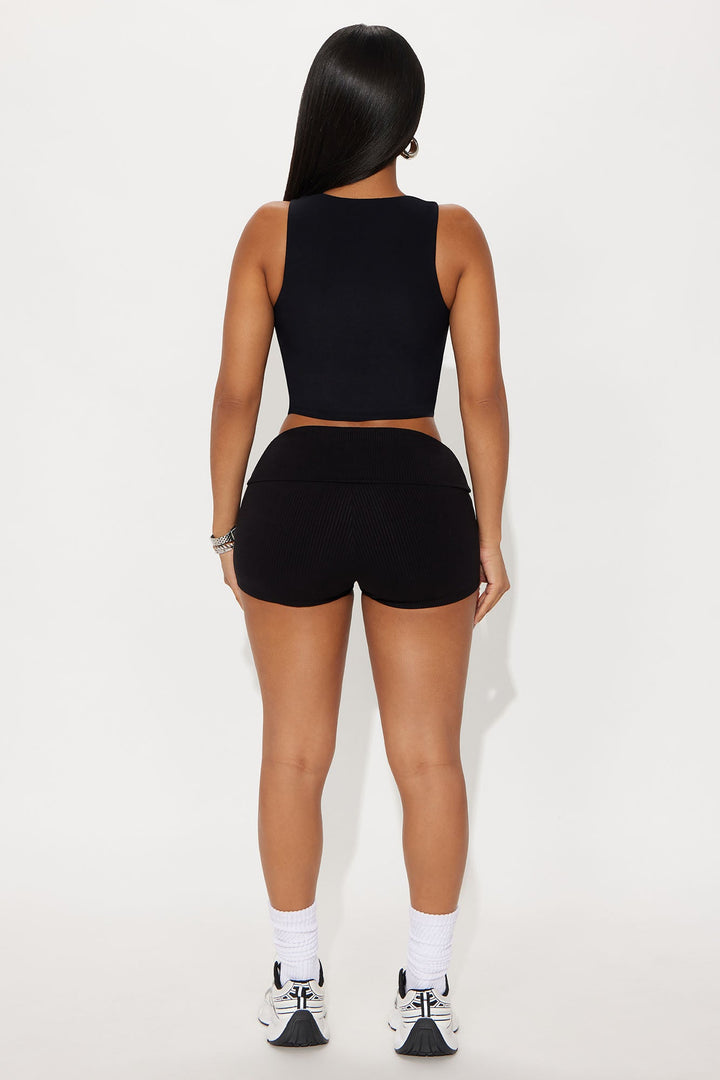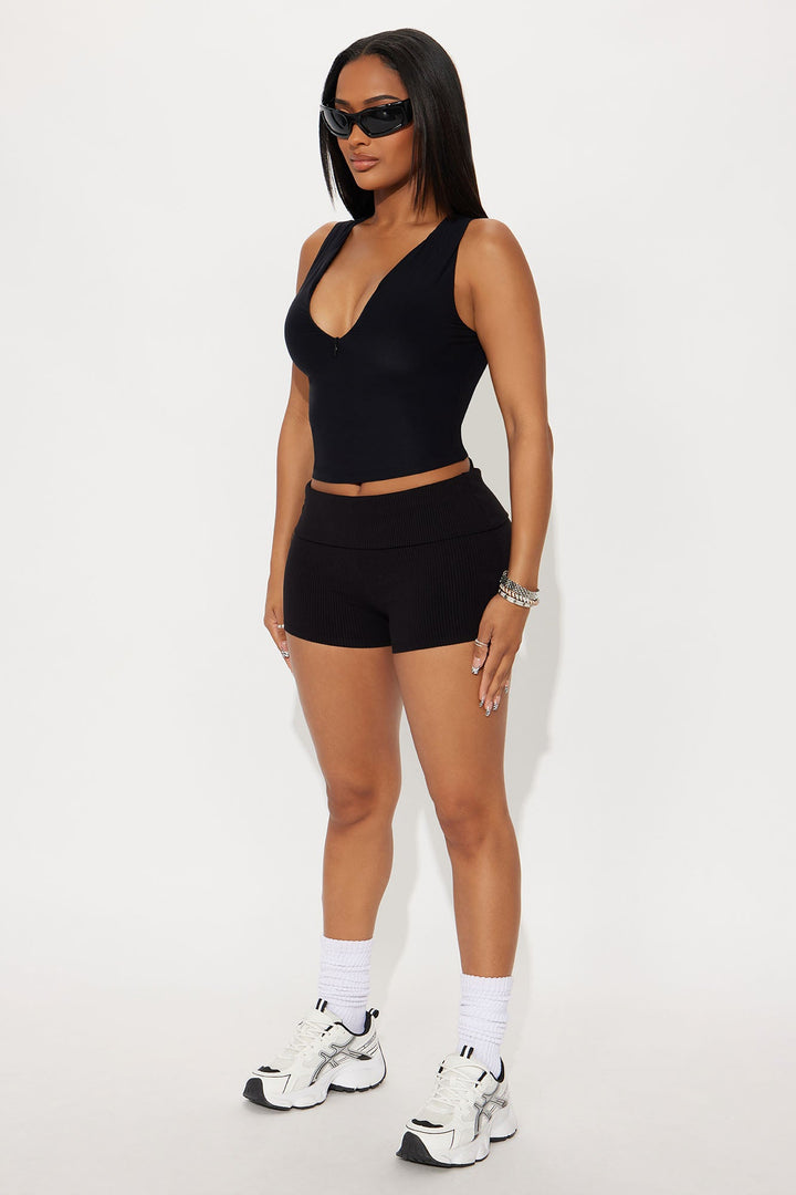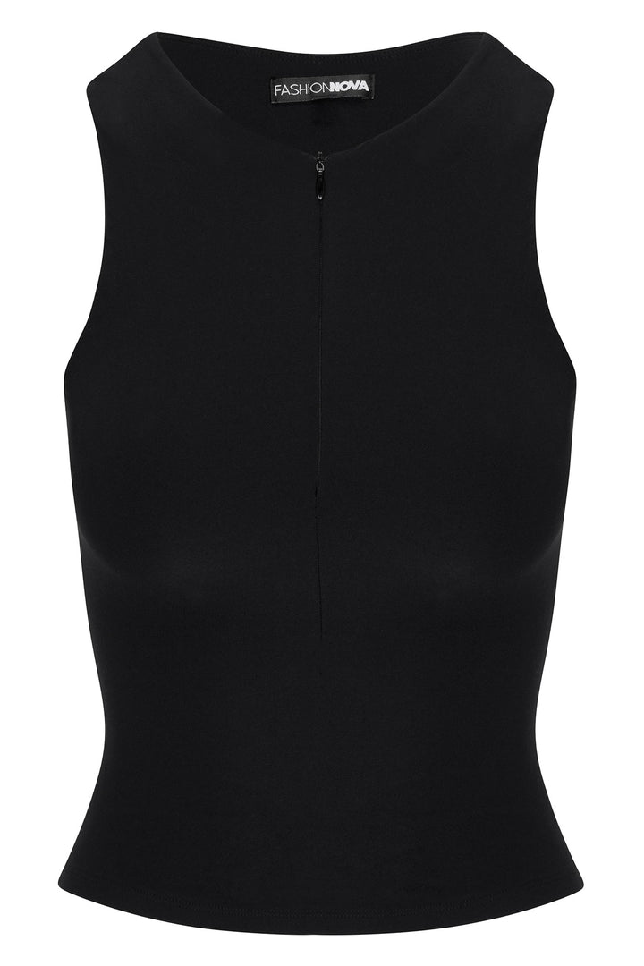 Second Skin Double Lined Zip Front Tank - Black