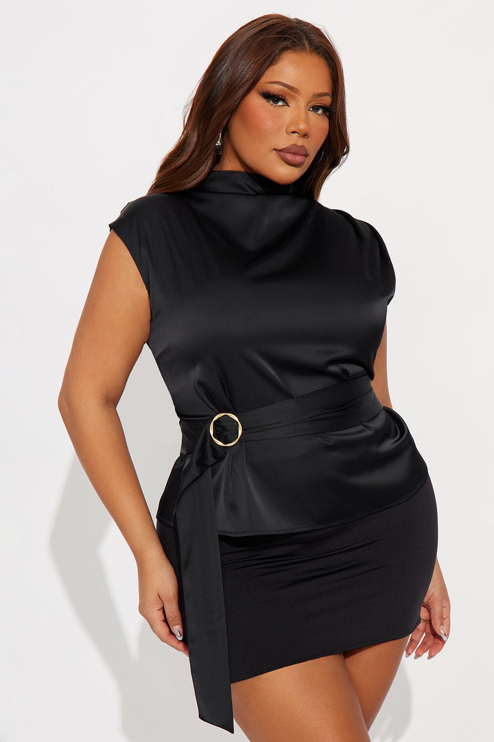Secret Society Belted Satin Top - Black