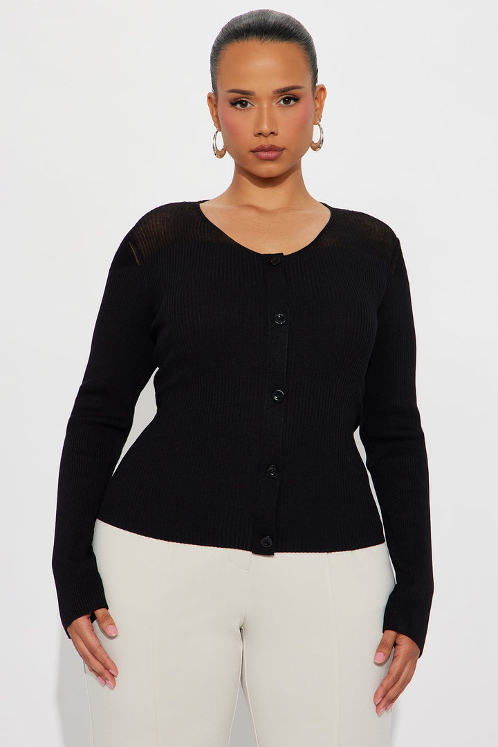 See Through You Mesh Detail Cardigan - Black