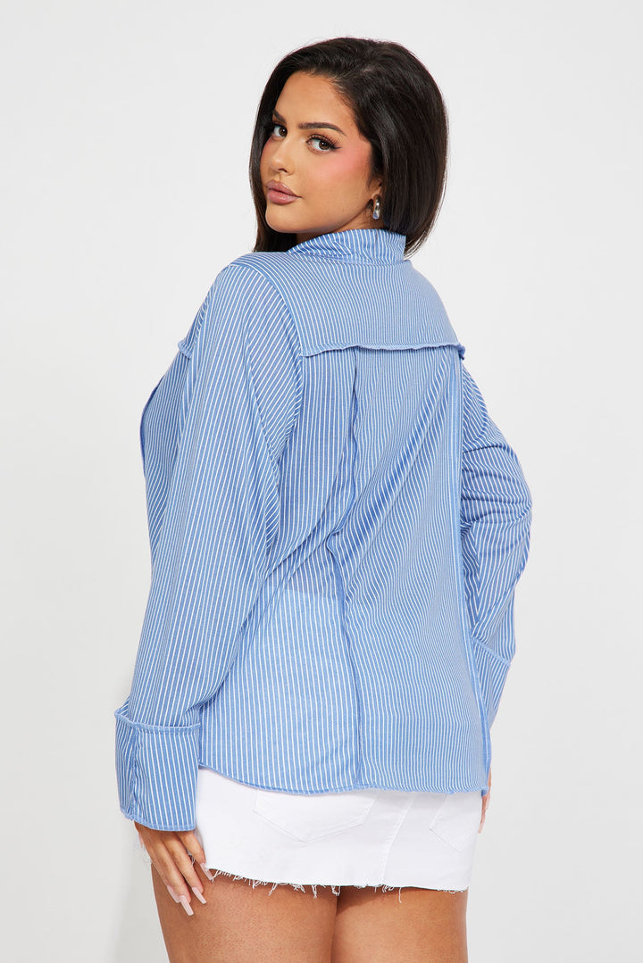 Available In Blue/combo. | Collar Neck | Long Sleeve | Button Up Detail | Seaming | Stretch | Disclaimer: Stripe Placement Will Vary. | 100% Polyester | Imported