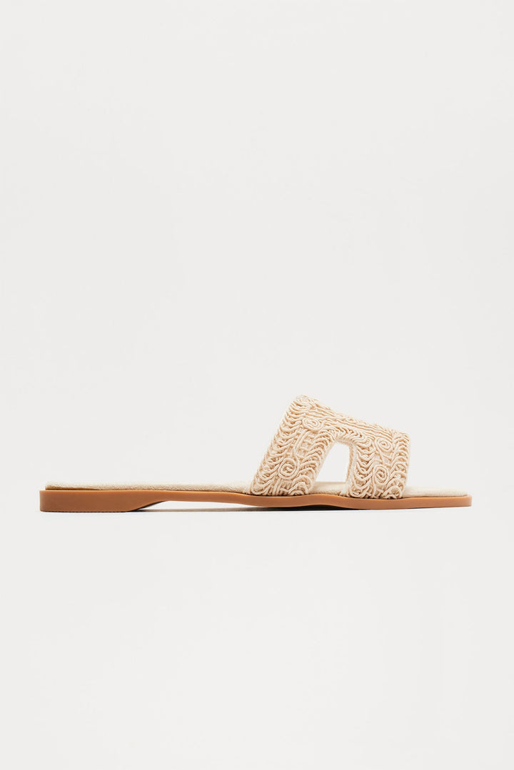 Available In Beige. | Flat Sandals | Square Toe | Crochet | Imported