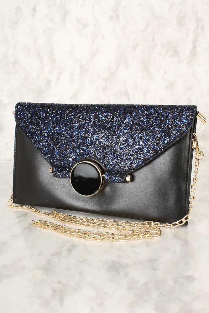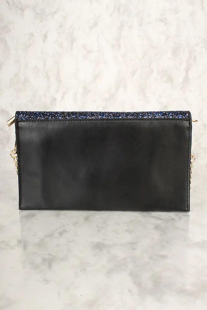 Sexy Black Glitter Faux Leather Envelope Crossbody Handbag