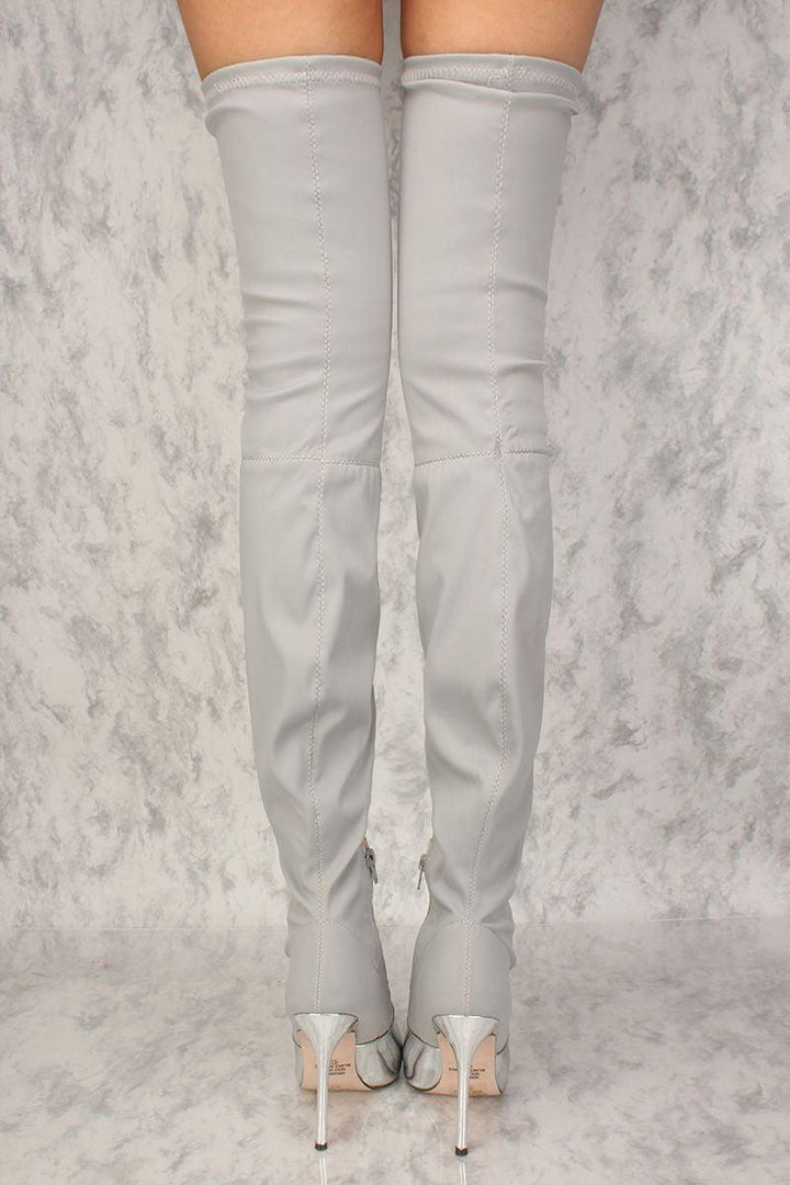Sexy Silver Mirror Pointy Toe Thigh High Heel Boots Lycra