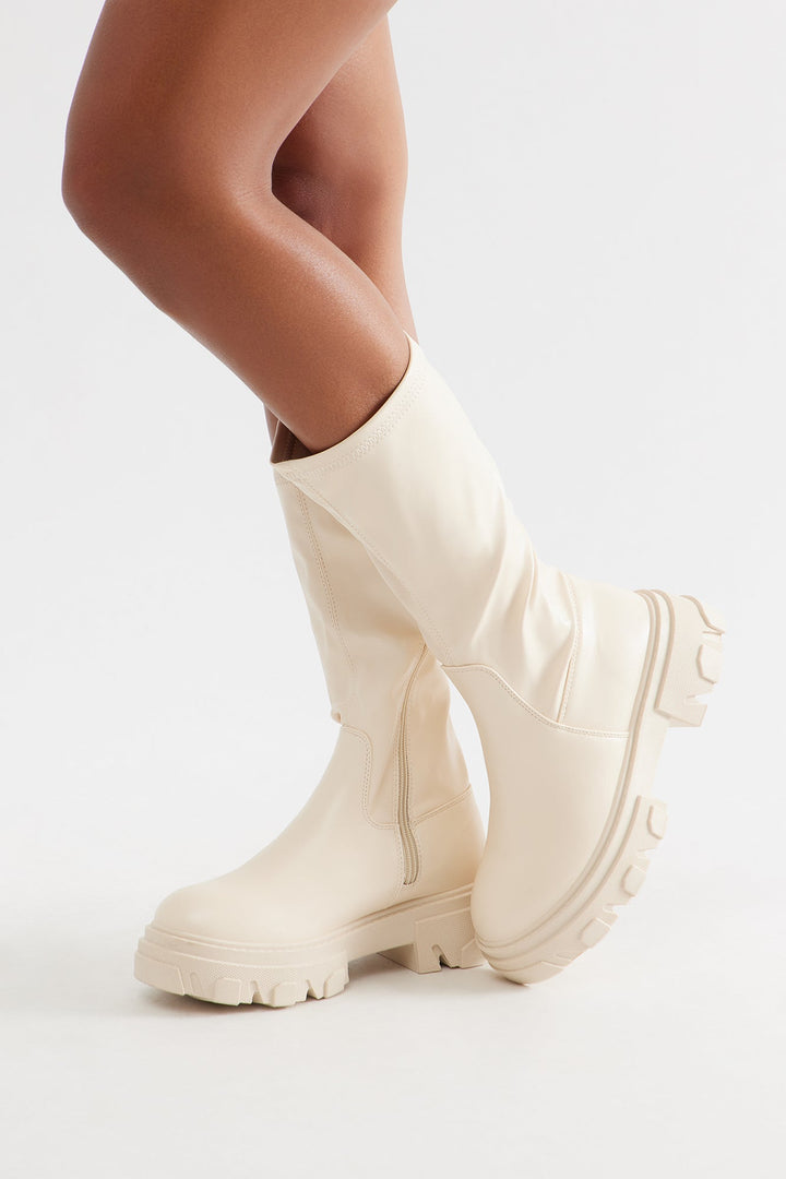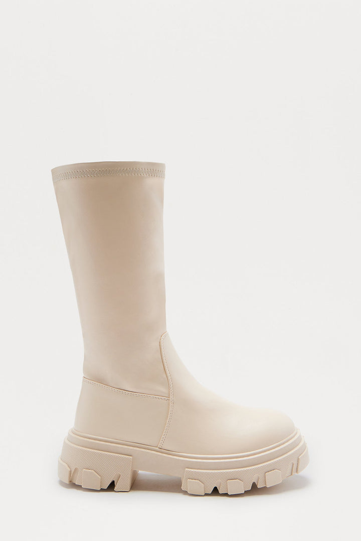 Shale Faux Leather Boots - Beige