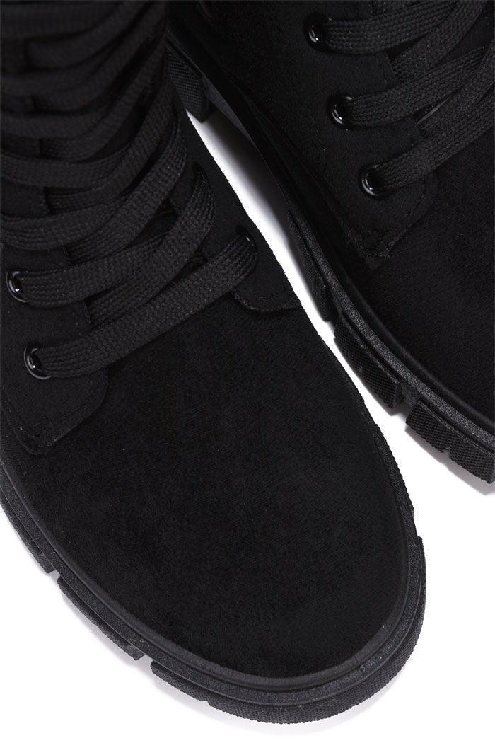 SHANDA - BLACK - BOOTIES by CAPE ROBBIN round toe suede booties lug platform 7-hole tie up shoelace Tired of bland,boring shoes? Step up your shoe game with these Shanda booties! They feature a 7-hole tie up lacing system,a chunky platform sole,and a lug sole for superior traction. Perfect for any season,these booties are as fashionable as they are comfortable. Comes in nude,brown,and mauve.