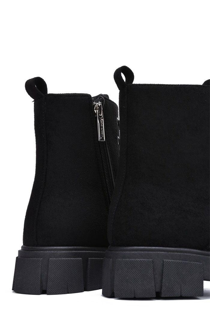 SHANDA - BLACK - BOOTIES by CAPE ROBBIN round toe suede booties lug platform 7-hole tie up shoelace Tired of bland,boring shoes? Step up your shoe game with these Shanda booties! They feature a 7-hole tie up lacing system,a chunky platform sole,and a lug sole for superior traction. Perfect for any season,these booties are as fashionable as they are comfortable. Comes in nude,brown,and mauve.