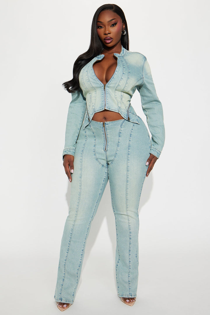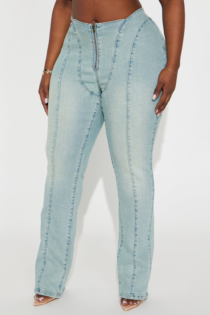 Available In Vintage Wash. | Pair With She's A Stunner Denim Jacket | Bootcut Jean | Zip Front | Seaming | 34" Inseam | 10" Rise | Low Stretch | Disclaimer: Due To The Specialized Wash Process, Each Garment Is Unique. | Self: 99% Cotton 1% Spandex | Imported
