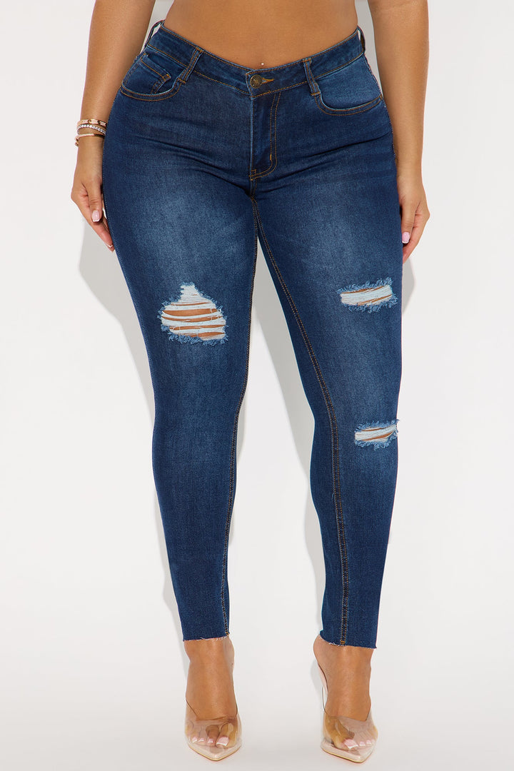 Available In Dark Wash. | Skinny Jean | 5 Pocket | Ripped | 9.5" Rise | 30" Inseam | Medium Stretch | Disclaimer: Due To The Specialized Wash & Distressing Process, Each Garment Is Unique. | 78% Cotton 19% Polyester 3% Spandex | Imported