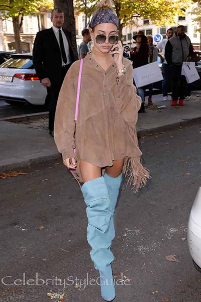 Must have chic thigh high boots! Features include, a denim fabric, pointy toe, ruched shaft, thigh high, side zipper closure, and a cushioned foot bed. Approximately a 4 inch heel, 21 inch shaft, and a 22 in circumference.
