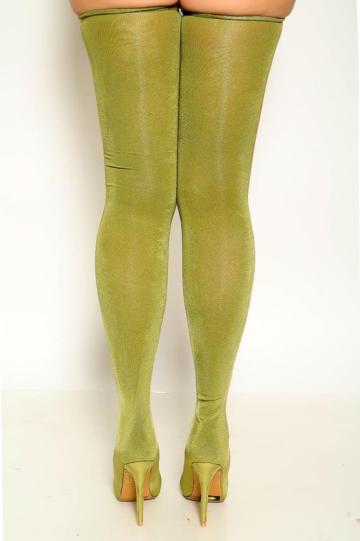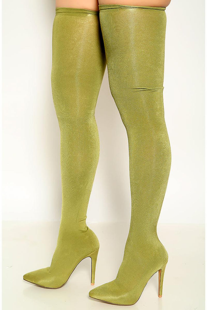 Olive Pointy Toe Mesh Sexy Single Sole Thigh High Heel Boots