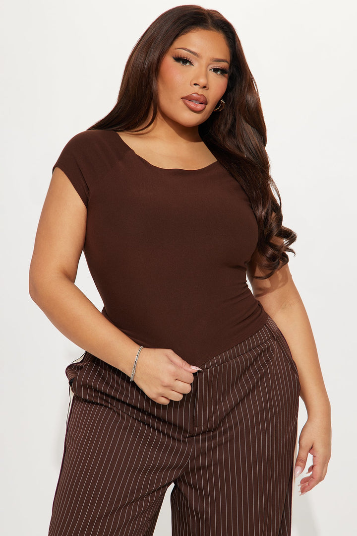 Simple Solutions Double Lined Boat Neck Top - Chocolate