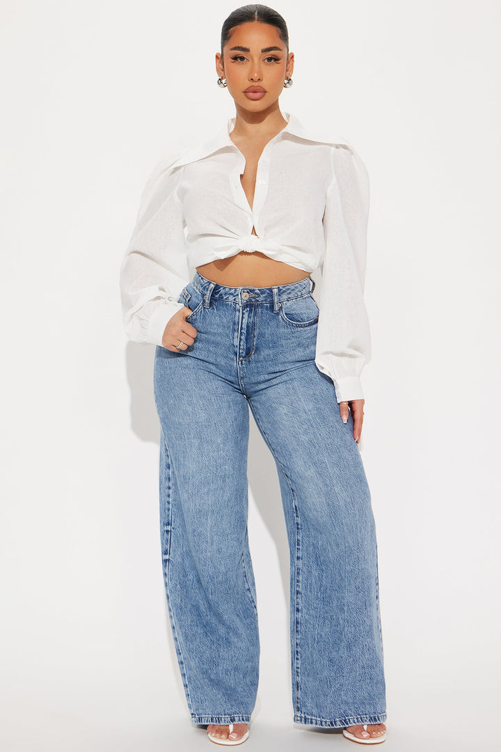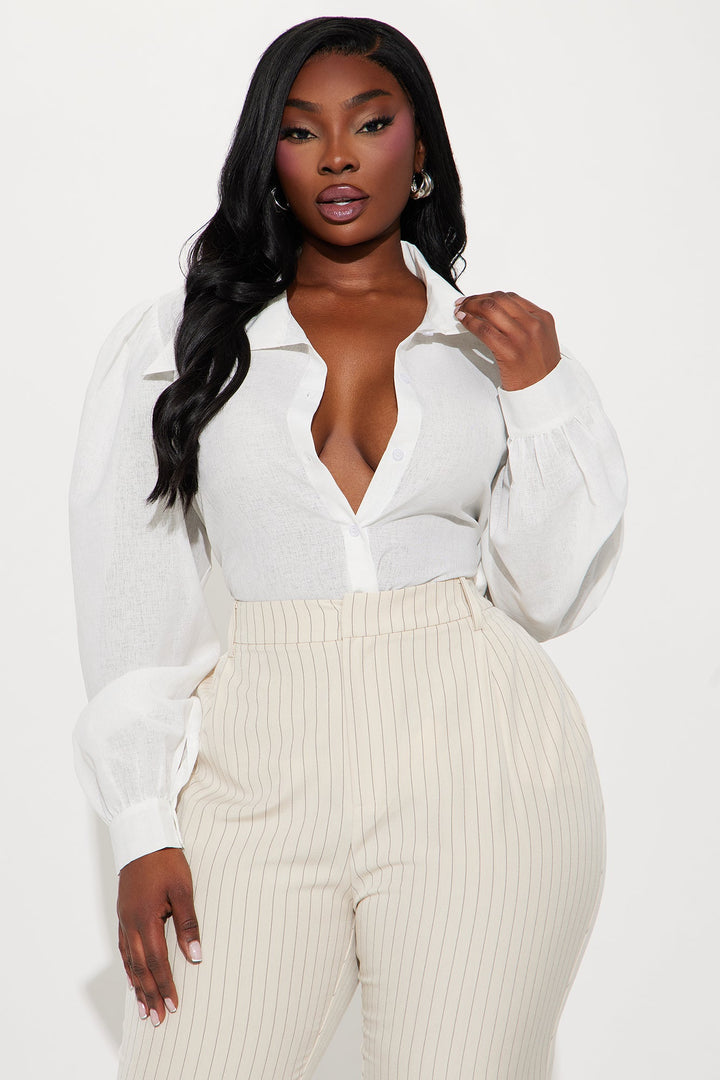 Available In Black, Mocha And White. | Shirt | Puff Sleeve | Button Front | Non Stretch | 100% Polyester | Imported