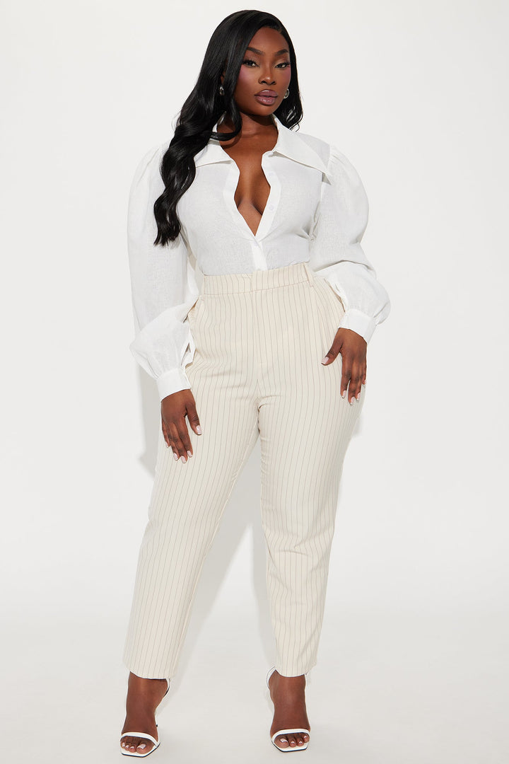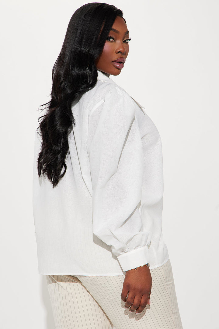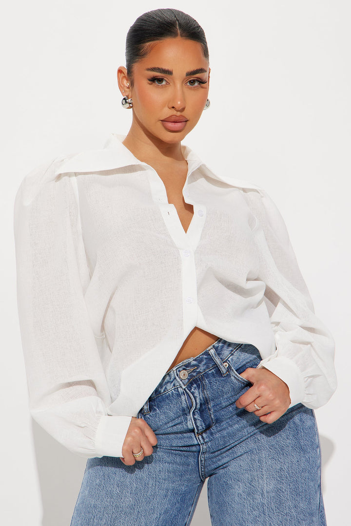 Available In Mocha And White. | Shirt | Puff Sleeve | Button Front | Non Stretch | 100% Polyester | Imported