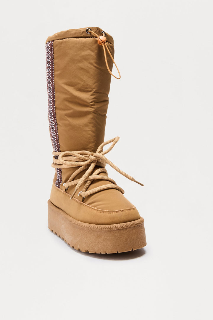 Available In Camel. | Flat Boots | Lace Up Detail | Round Toe | 1.3" Platform | Imported