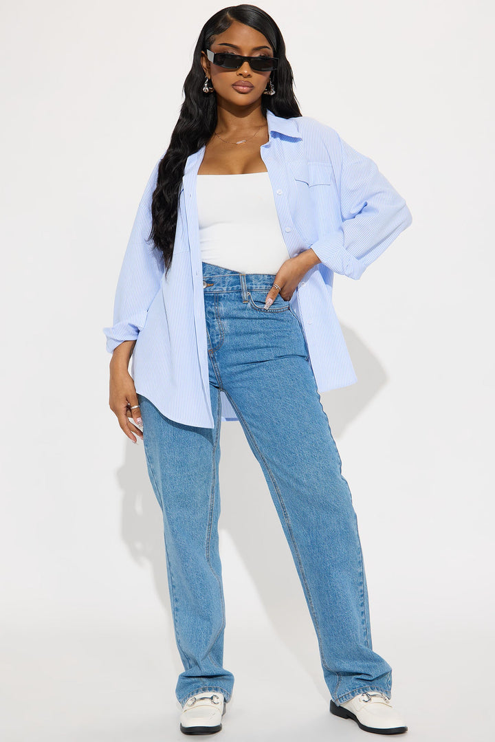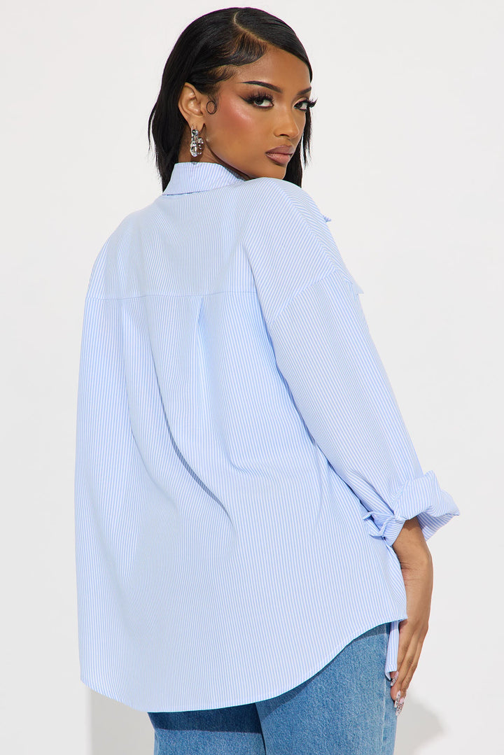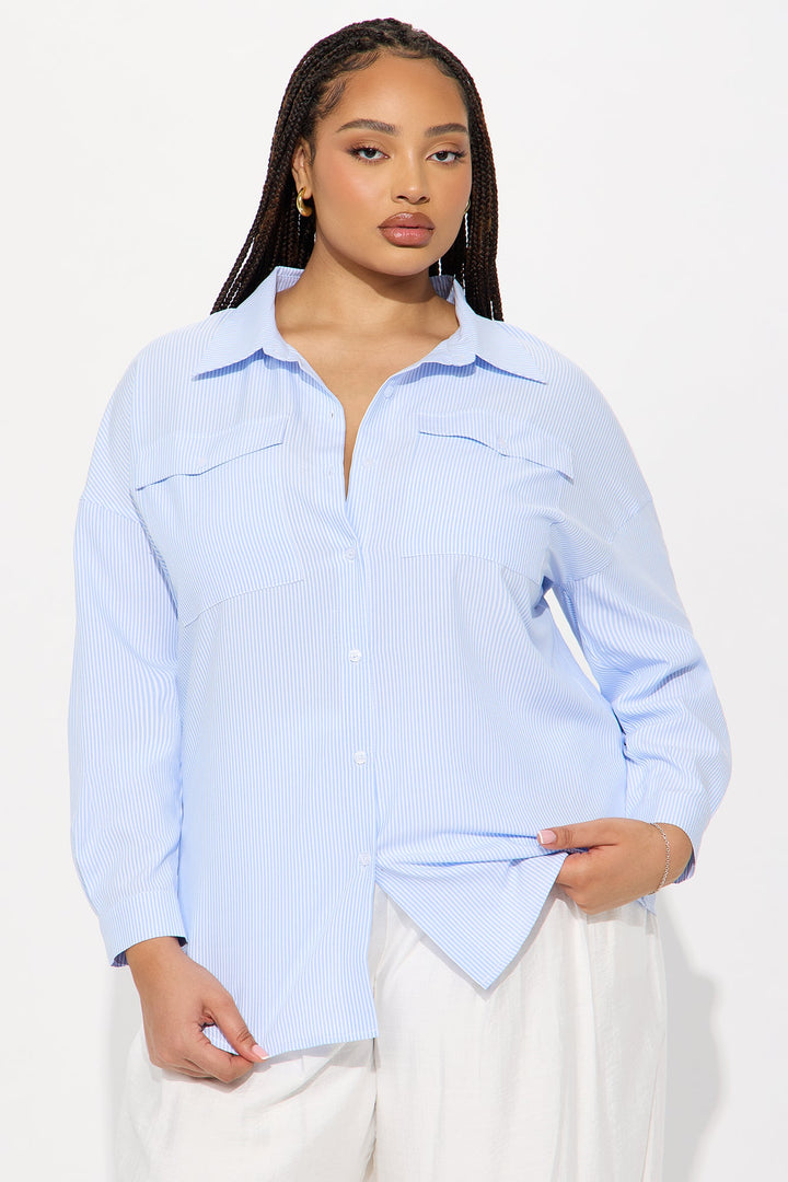 Skip Town Pinstripe Challis Shirt - White/Blue