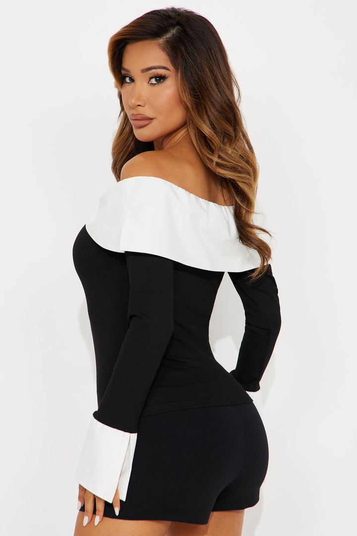 Skybound Contrast Trim Off Shoulder Top - Black/White