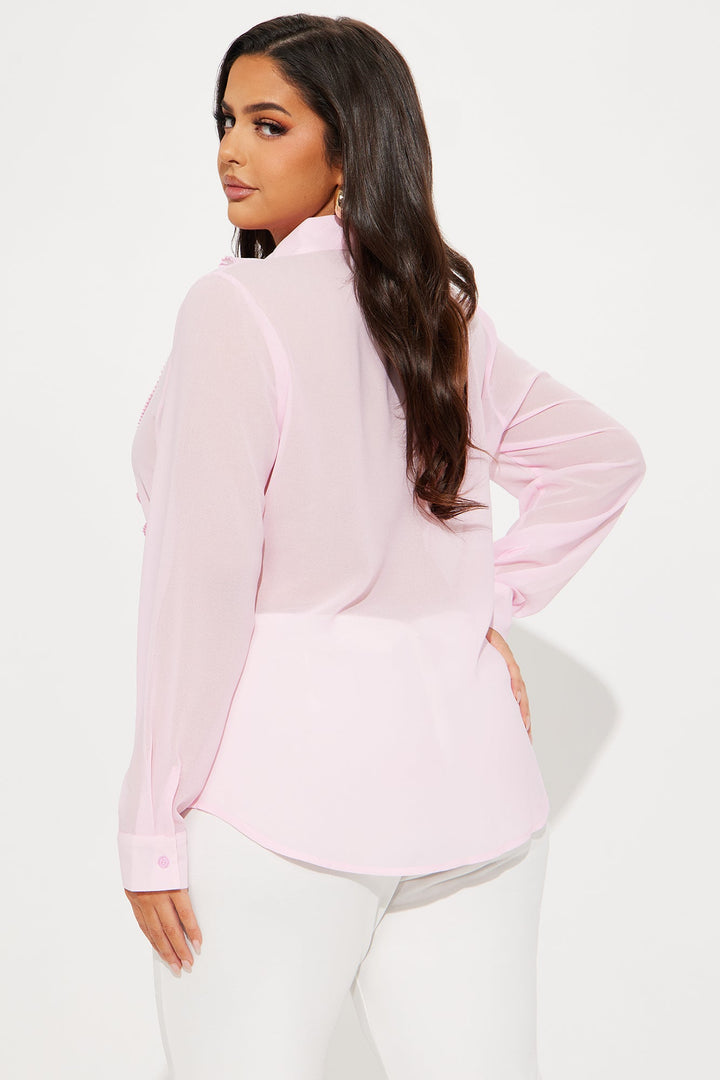 Available In Pink And White. | Ruffle Shirt | Non Stretch | Button Front | 100% Polyester | Imported