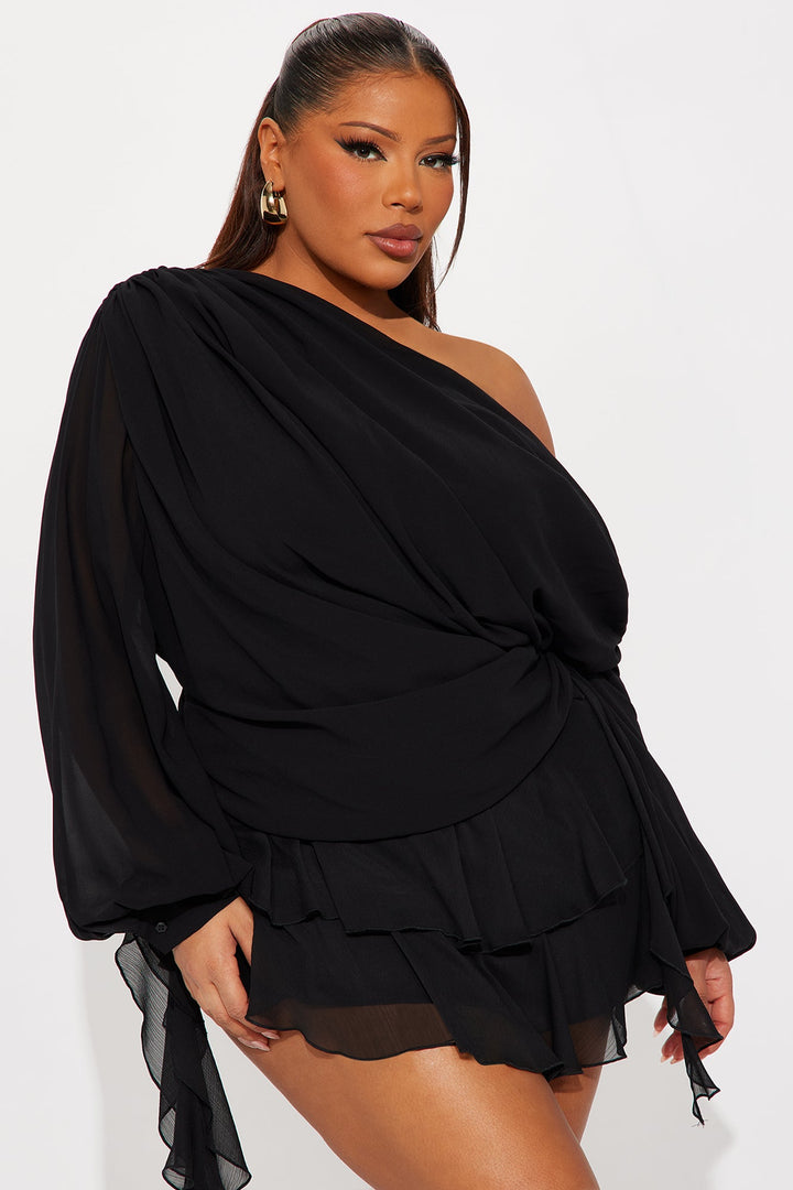 Sneak Peek One Shoulder Chiffon Blouse - Black
