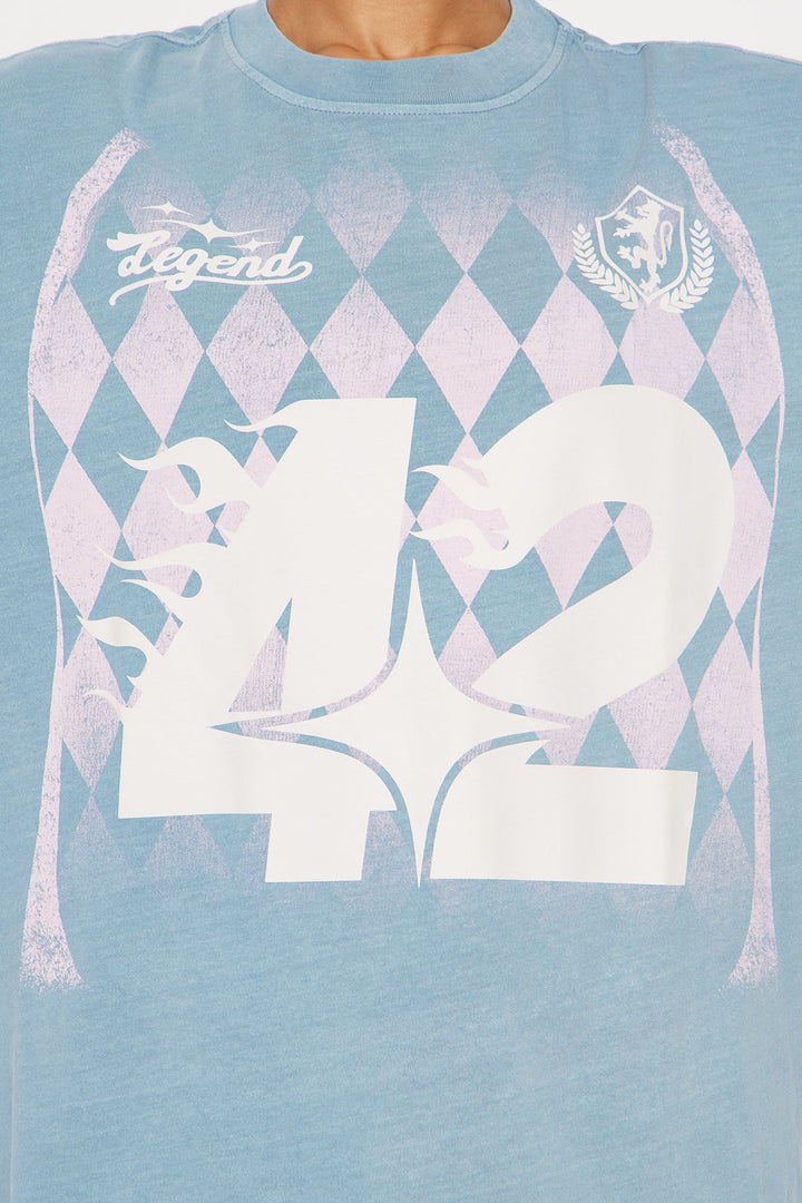Soccer Number Flame Checker Tee - Blue