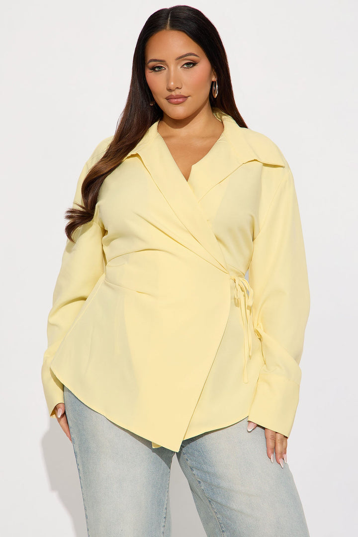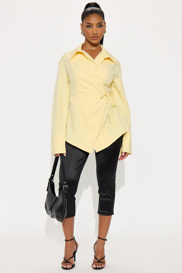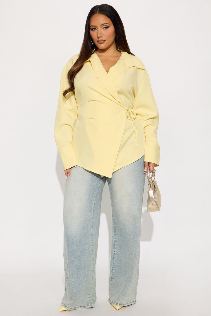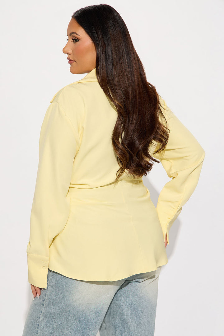 Available In Butter Yellow And White. | Blouse | Wide Collar | Tie Waist | Self: 92% Polyester 8% Spandex | Imported