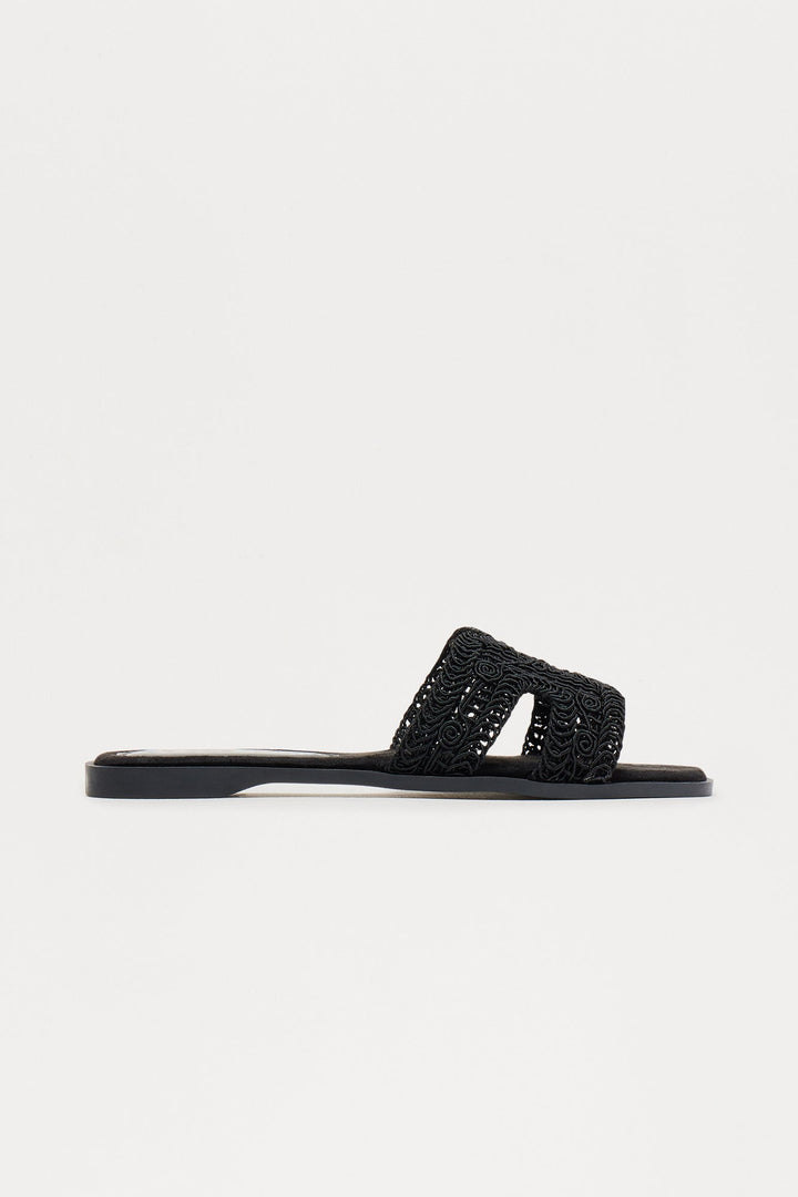 Available In Beige And Black. | Flat Sandals | Crochet Strap | Square Toe | Flat Heel | Imported