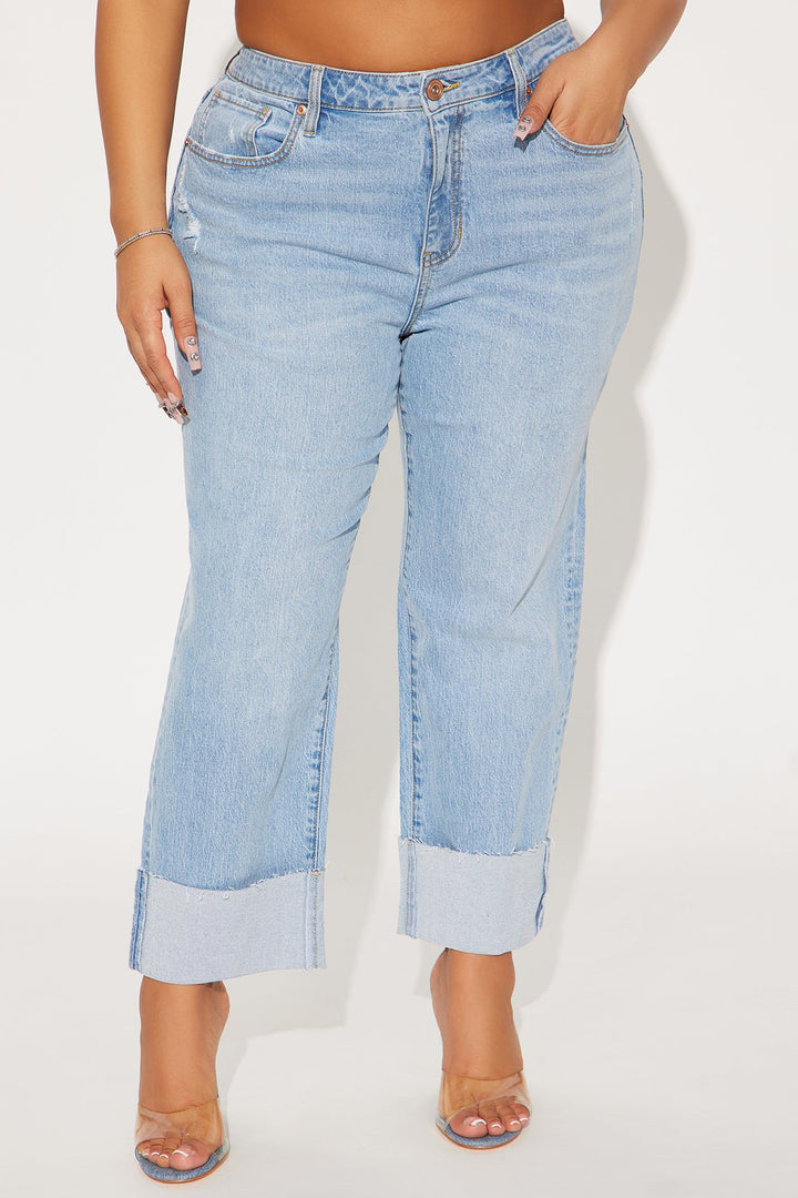 Solene Relaxed Cuffed Straight Leg Jeans - Light Wash