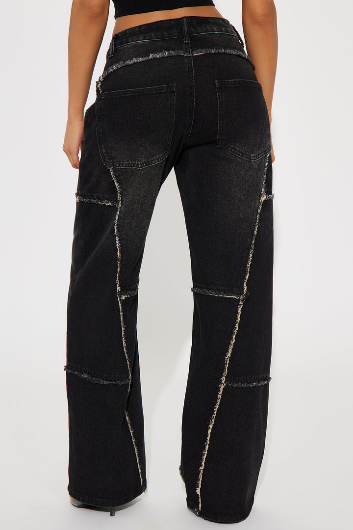 Sorella Non Stretch Frayed Wide Leg Jeans - Black Wash