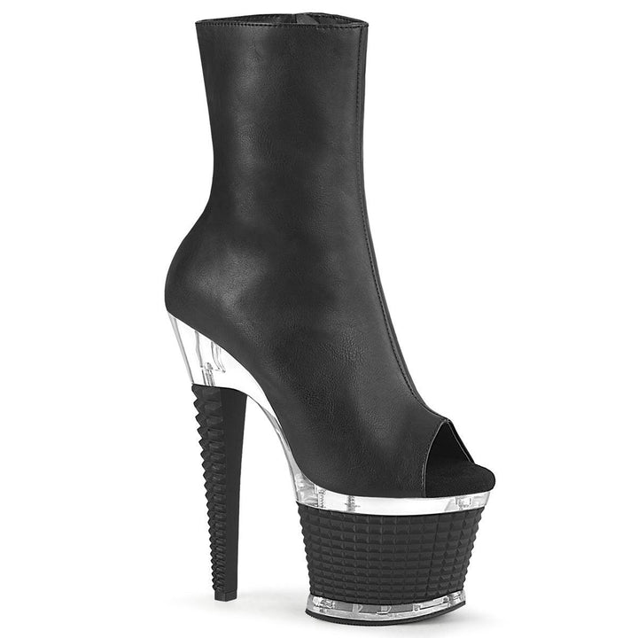 7"" (178mm) Heel, 3"" (76mm) Textured Platform Peep Toe Ankle Boot, Inner Side Zip Closure