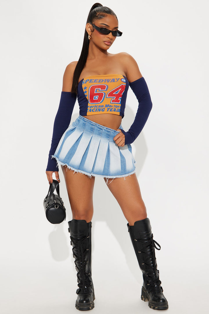 Available In Navy/combo. | Tank Top | Long Sleeve | Off Shoulder | Front Screen | Self/Contrast: 95% Cotton 5% Spandex | Imported