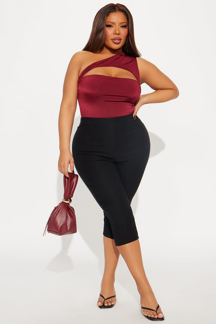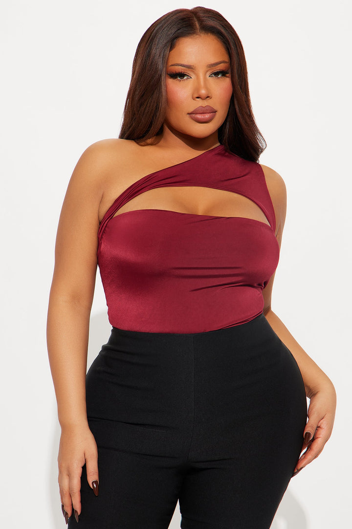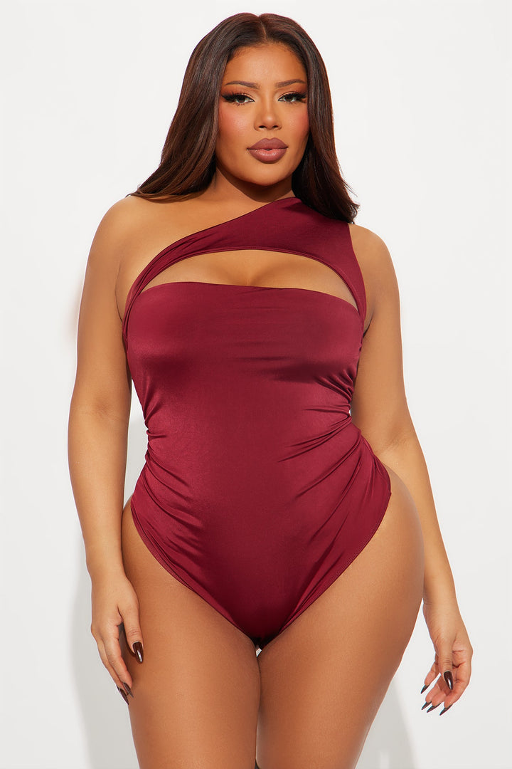 Spring Fever One Shoulder Cut Out Bodysuit - Burgundy