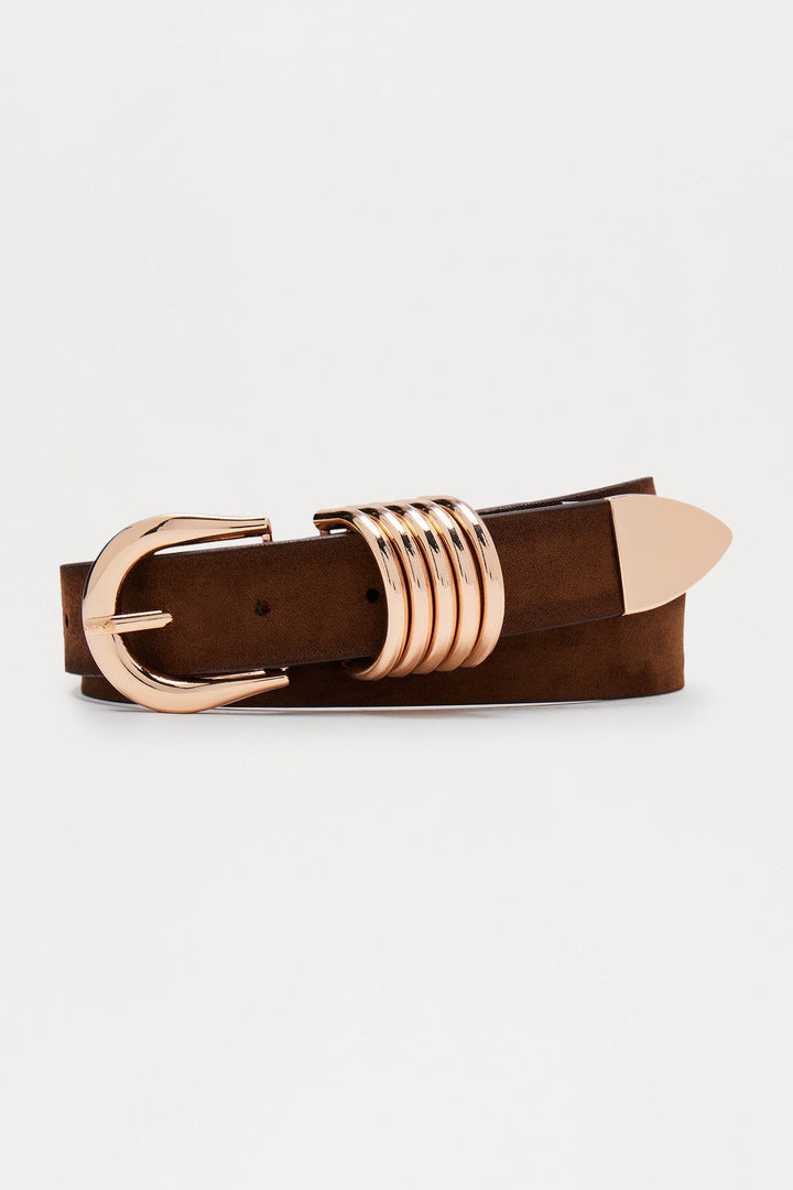 Available In Brown. | Faux Suede Material | Hardware Detail | Length: 41" | Imported