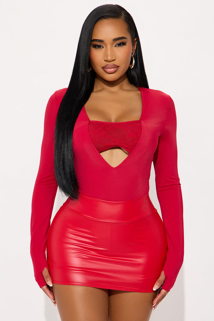 Standing Ovation Long Sleeve High Cut Bodysuit - Red