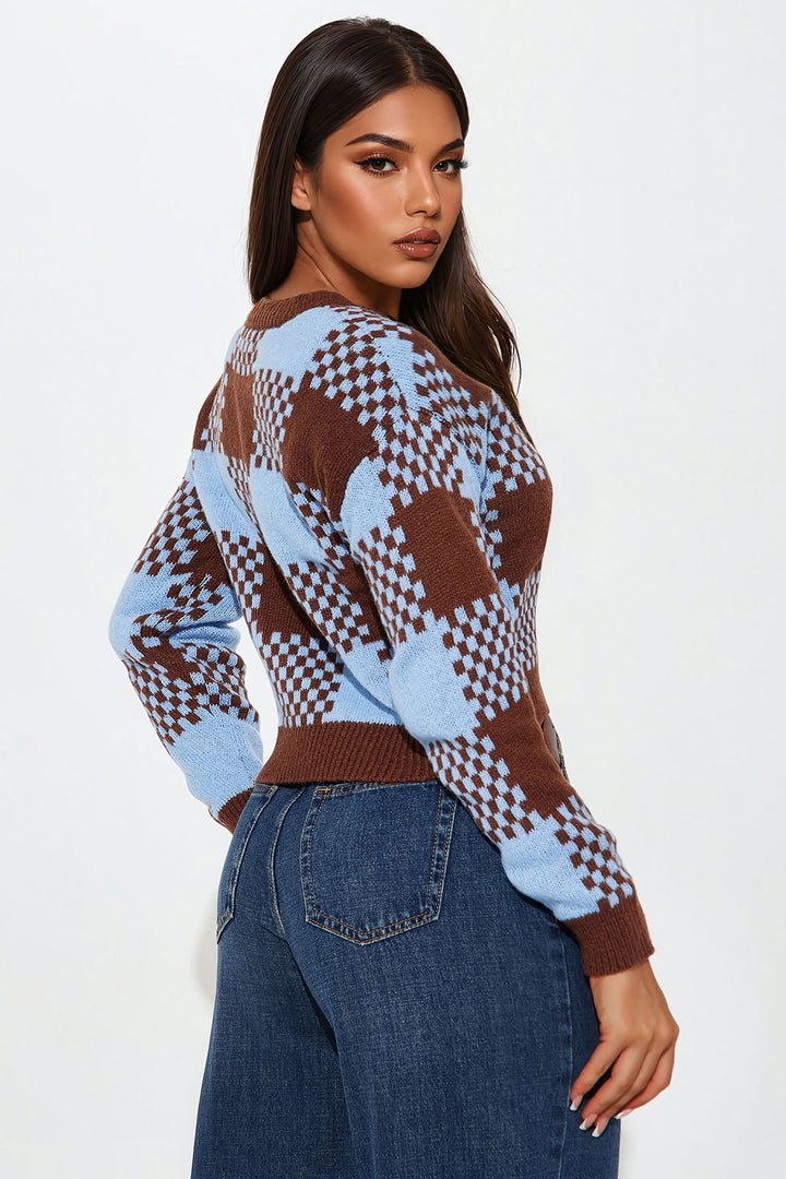 Stay In School Plaid Cardigan - Brown/combo