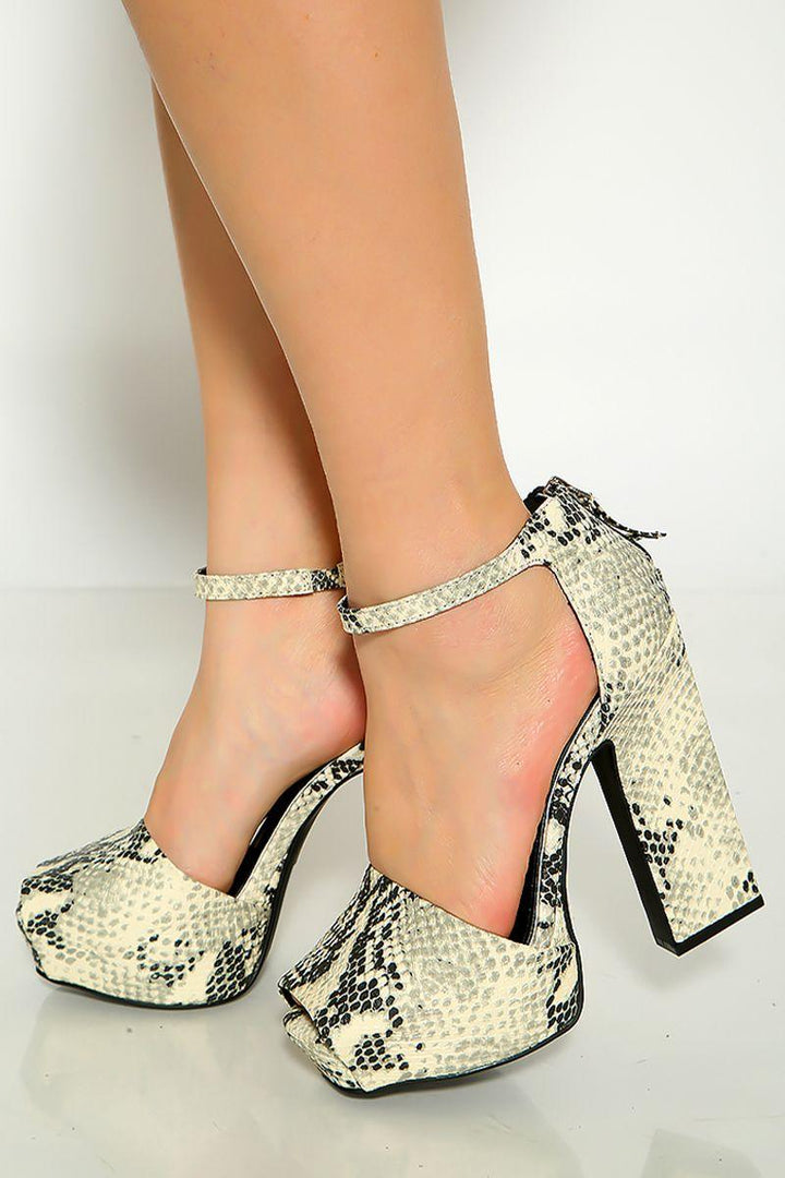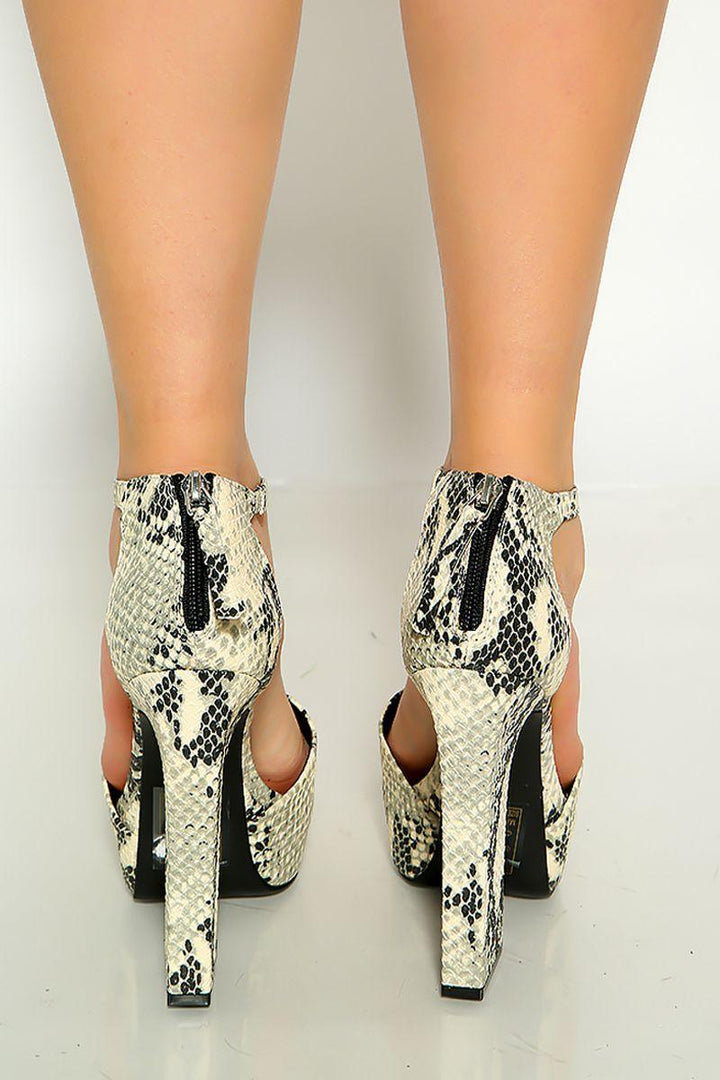 Stone Black Snake Print Peep Toe Platform Chunky High Heels