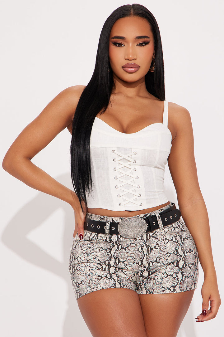 Available In Chocolate And Ivory. | Linen Corset Top | Non Stretch | Front Lace Up | Back Zipper | Partial Lining | Shell : 85% Rayon , 15% Linen | Lining: 100% Polyester | Imported